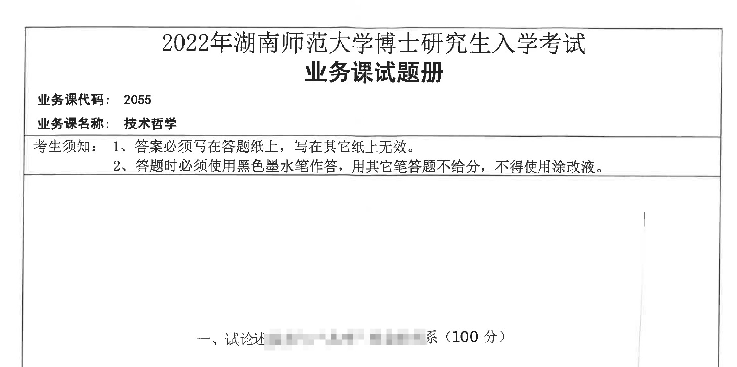 2022 年 湖南师范大学 2055 技术哲学考博真题
