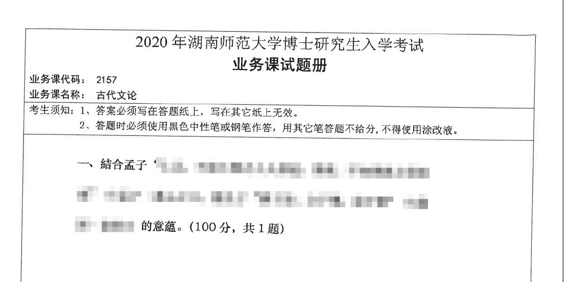 2020 年 湖南师范大学 2157 古代文论考博真题