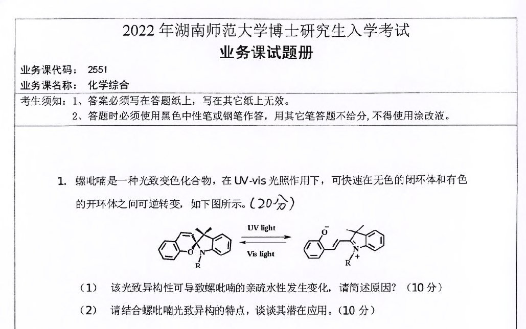 湖南师范大学 2551 化学综合考博真题覆盖 2012-2025 年关键年份,所有年份真题均配备完整、精准的高分答案详解,解析由化学专业教研团队编写,涵盖考点定位、化学现象分析、理论逻辑推导及实验设计梳理,能帮助考生高效掌握命题规律与应试策略。以下为 2022 年湖南师范大学 2551 化学综合考博真题(精选 6 道典型题目)及答案详解,助力考生针对性备考。