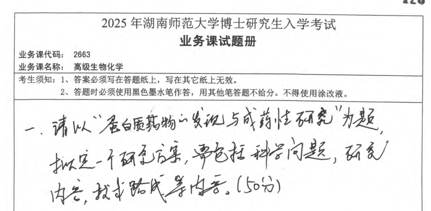 建议考生结合真题及答案详解系统备考,重点掌握 “生物化学经典理论解读”“生化研究方案设计”“学术观点辩证辨析” 三大能力,同时关注生物化学前沿研究(如蛋白质组学与 AI 的融合等),提升学术表达与问题解决能力,预祝各位考生考博成功!