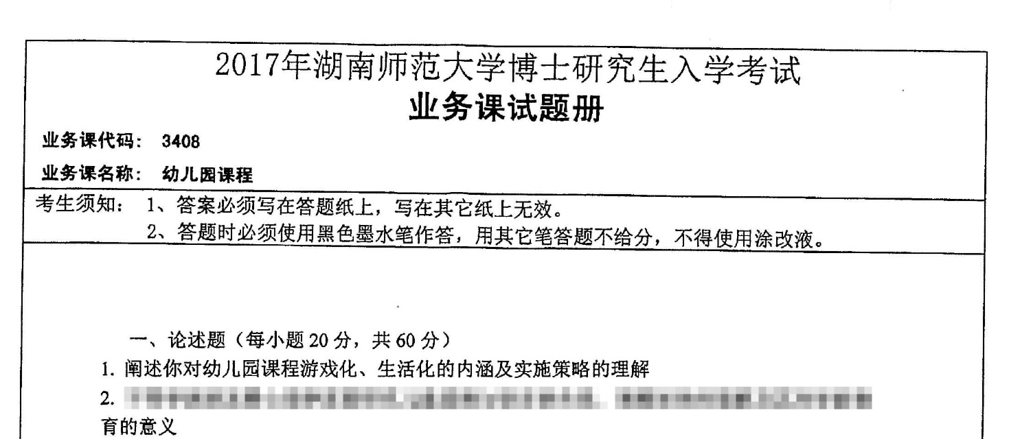 湖南师范大学 3408 幼儿园课程考博真题覆盖 2012-2025 年关键年份,所有年份真题均配备完整、精准的高分答案详解,解析由学前教育专业教研团队编写,涵盖考点定位、幼教现象分析、理论逻辑推导及学术观点梳理,能帮助考生高效掌握命题规律与应试策略。以下为湖南师范大学 3408 幼儿园课程考博真题(精选题目)及答案详解,助力考生针对性备考。