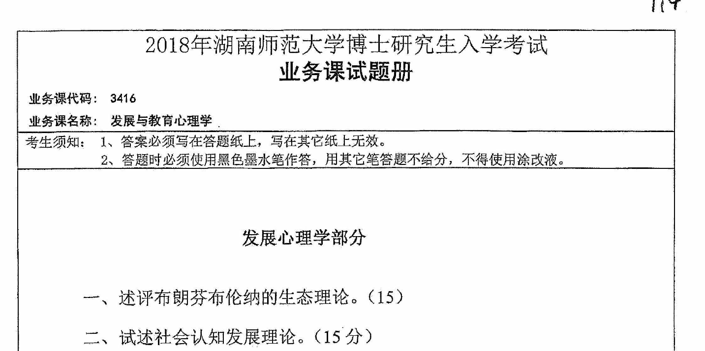 发展与教育心理学(3416心理学应用综合)是湖南师范大学心理学类博士研究生招生考试的核心专业科目,其真题对把握发展与教育心理学命题方向、提升心理理论分析与应用能力具有关键指导意义。考生可通过以下权威渠道获取该校全学科考博真题(含英语、发展与教育心理学、专业课等)及配套高分答案详解,为备考提供精准资源支撑: