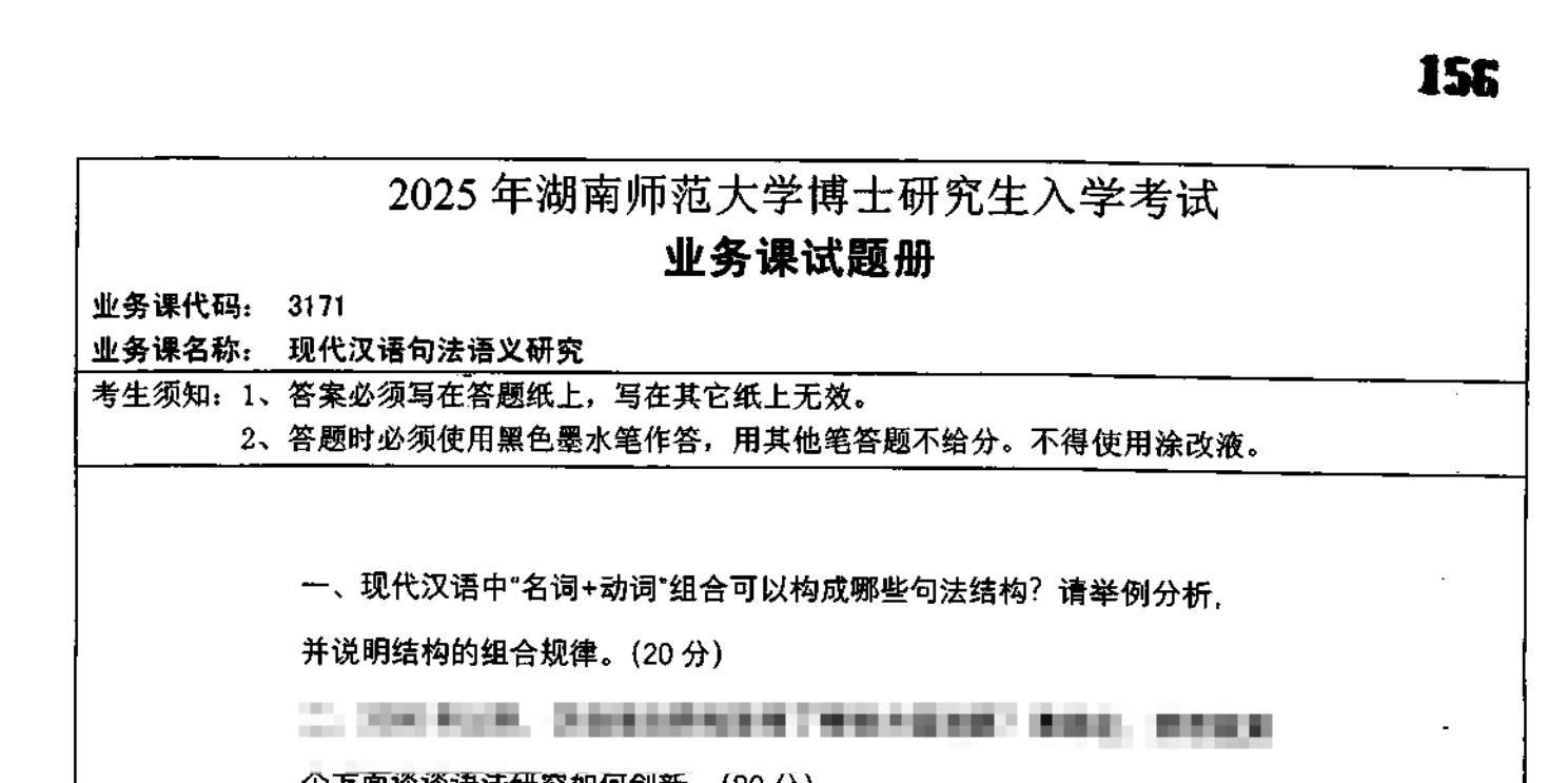 考博备考需依托权威真题资源,湖南师范大学 3171 现代汉语句法语义研究考博真题及全学科考博资料(含英语、专业课)均配备高分答案详解,可通过以下渠道获取: