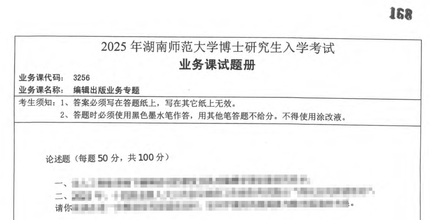 湖南师范大学 3256 编辑出版业务专题考博真题覆盖 2012-2025 年关键年份,所有年份真题均配备完整、精准的高分答案详解,解析由新闻传播学专业教研团队编写,涵盖考点定位、出版业务现象分析、实务逻辑推导及学术观点梳理,能帮助考生高效掌握命题规律与应试策略。以下为湖南师范大学 3256 编辑出版业务专题考博真题(精选题目)及答案详解,助力考生针对性备考。