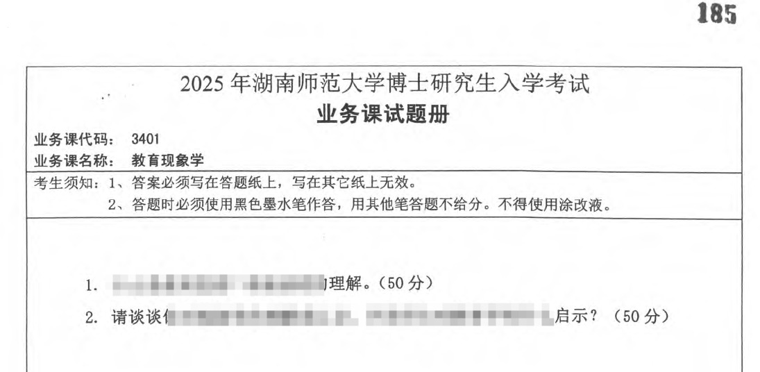 湖南师范大学 3401 教育现象学考博真题