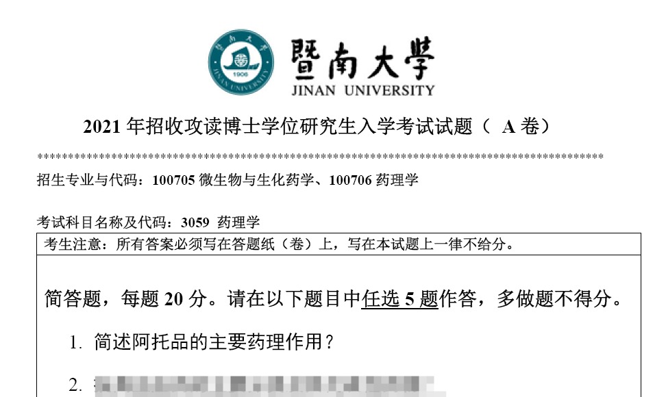 考博备考需依托权威真题资源,暨南大学 3059 药理学考博真题及全学科考博资料(含各专业课)均配备高分答案详解,可通过以下渠道获取: