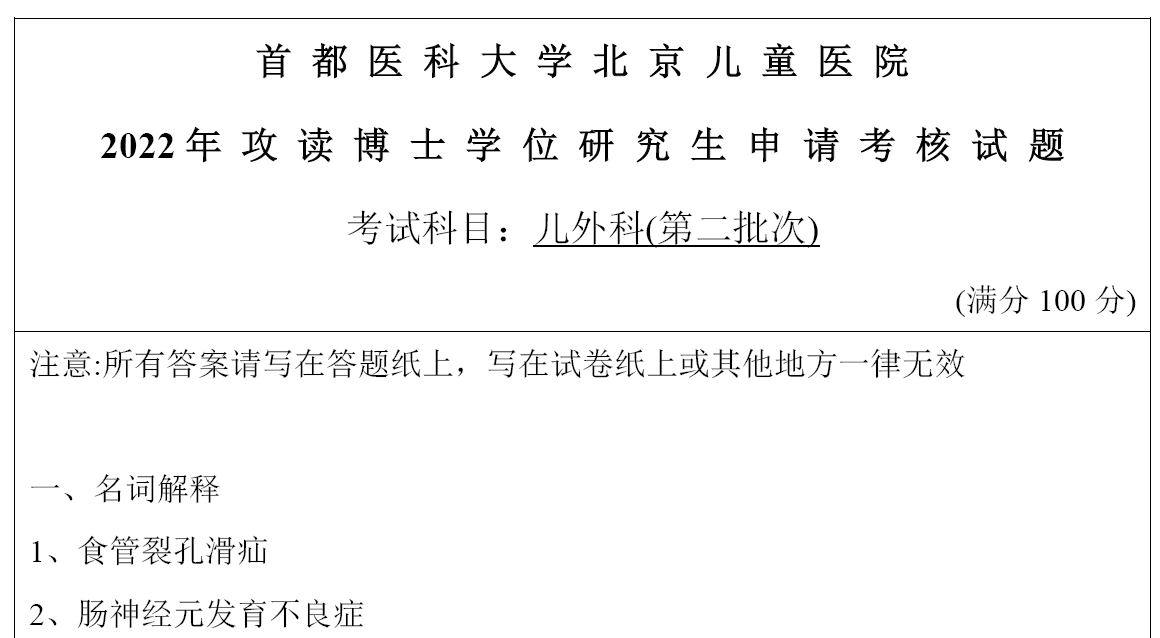 如需获取 2022 年首都医科大学儿外科(北京儿童医院)考博真题完整试卷、2023-2024 年最新批次真题及高分答案详解,可通过以下链接下载: