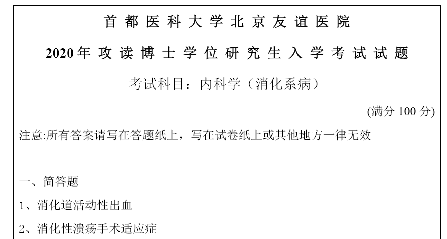 如需获取 2020 年首都医科大学内科学 (消化系病)(友谊医院) 考博真题完整试卷、2023-2024 年最新真题及高分答案详解,可通过以下链接下载:
