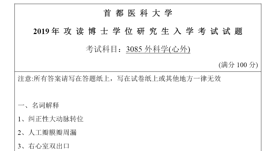 如需获取 2019 年首都医科大学心外科 (统招) 考博真题完整试卷、2023-2024 年最新真题及高分答案详解,可通过以下链接下载:
