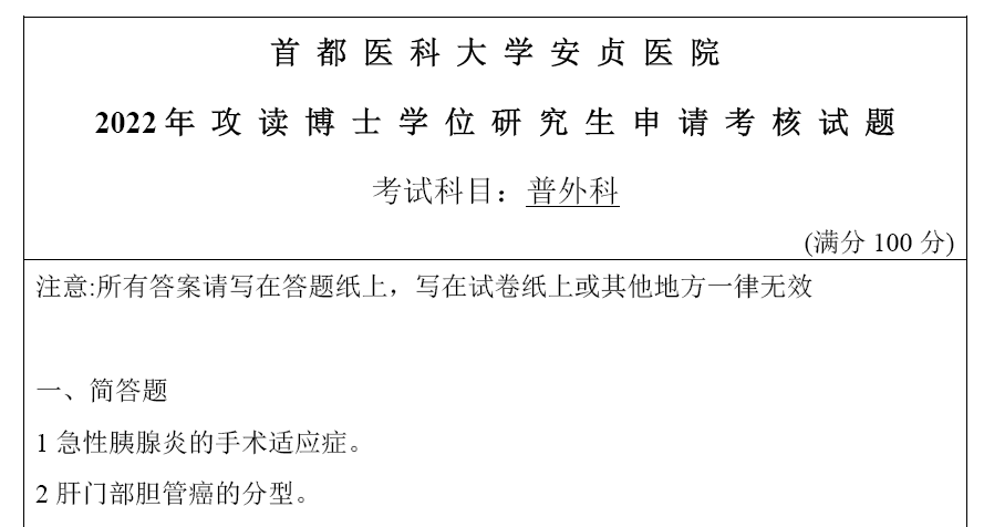 如需获取 2022 年首都医科大学普外科 (安贞医院) 考博真题完整试卷、2024 年最新真题及高分答案详解,可通过以下链接下载: