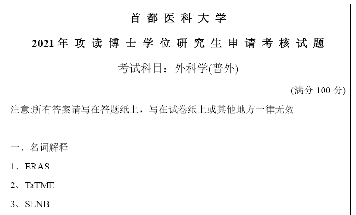 如需获取 2021 年首都医科大学普外科 (统考) 考博真题完整试卷、2024 年最新真题及高分答案详解,可通过以下链接下载: