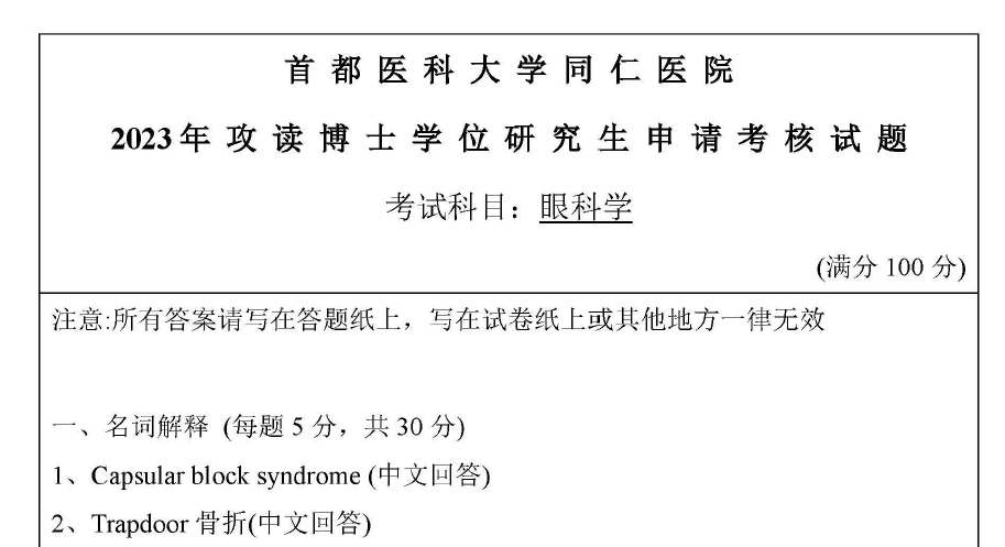 如需获取 2023 年首都医科大学眼科学 (同仁医院) 考博真题完整试卷、2024 年最新真题及高分答案详解,可通过以下链接下载: