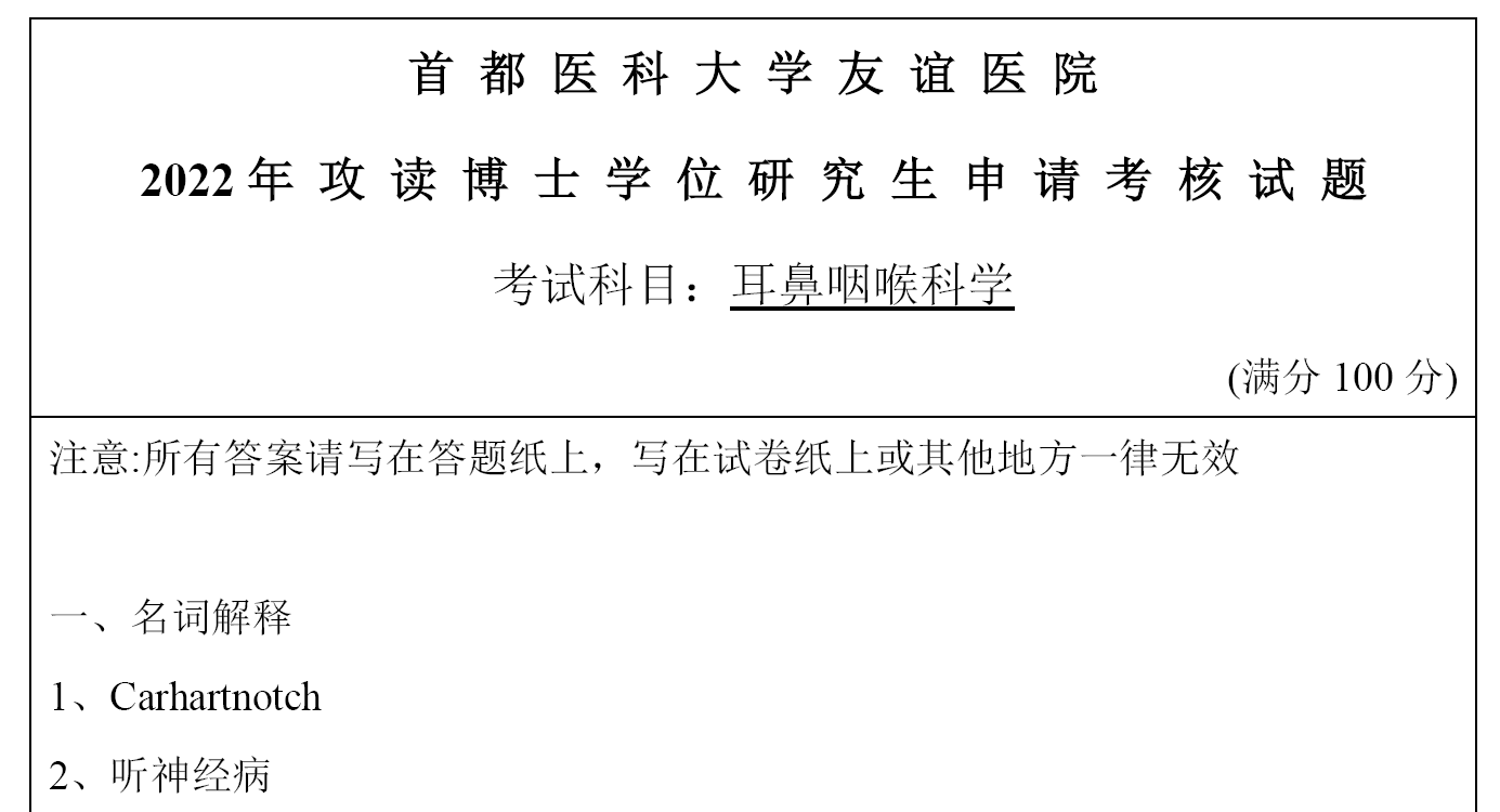 首都医科大学耳鼻咽喉科学(友谊医院)考博真题覆盖多年份,所有年份真题均配备完整、精准的高分答案详解,解析由耳鼻咽喉科学专业教研团队编写,涵盖考点定位、耳鼻咽喉疾病现象分析、诊疗逻辑推导及学术观点梳理,能帮助考生高效掌握命题规律与应试策略。以下为首都医科大学耳鼻咽喉科学(友谊医院)考博真题(精选题目)及答案详解,助力考生针对性备考。