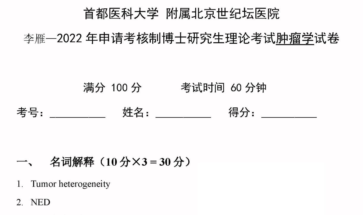 首都医科大学肿瘤学(北京世纪坛医院)考博真题覆盖多年份,所有年份真题均配备完整、精准的高分答案详解,解析由肿瘤学专业教研团队编写,涵盖考点定位、肿瘤疾病现象分析、诊疗逻辑推导及学术观点梳理,能帮助考生高效掌握命题规律与应试策略。以下为首都医科大学肿瘤学(北京世纪坛医院)考博真题(精选题目)及答案详解,助力考生针对性备考。