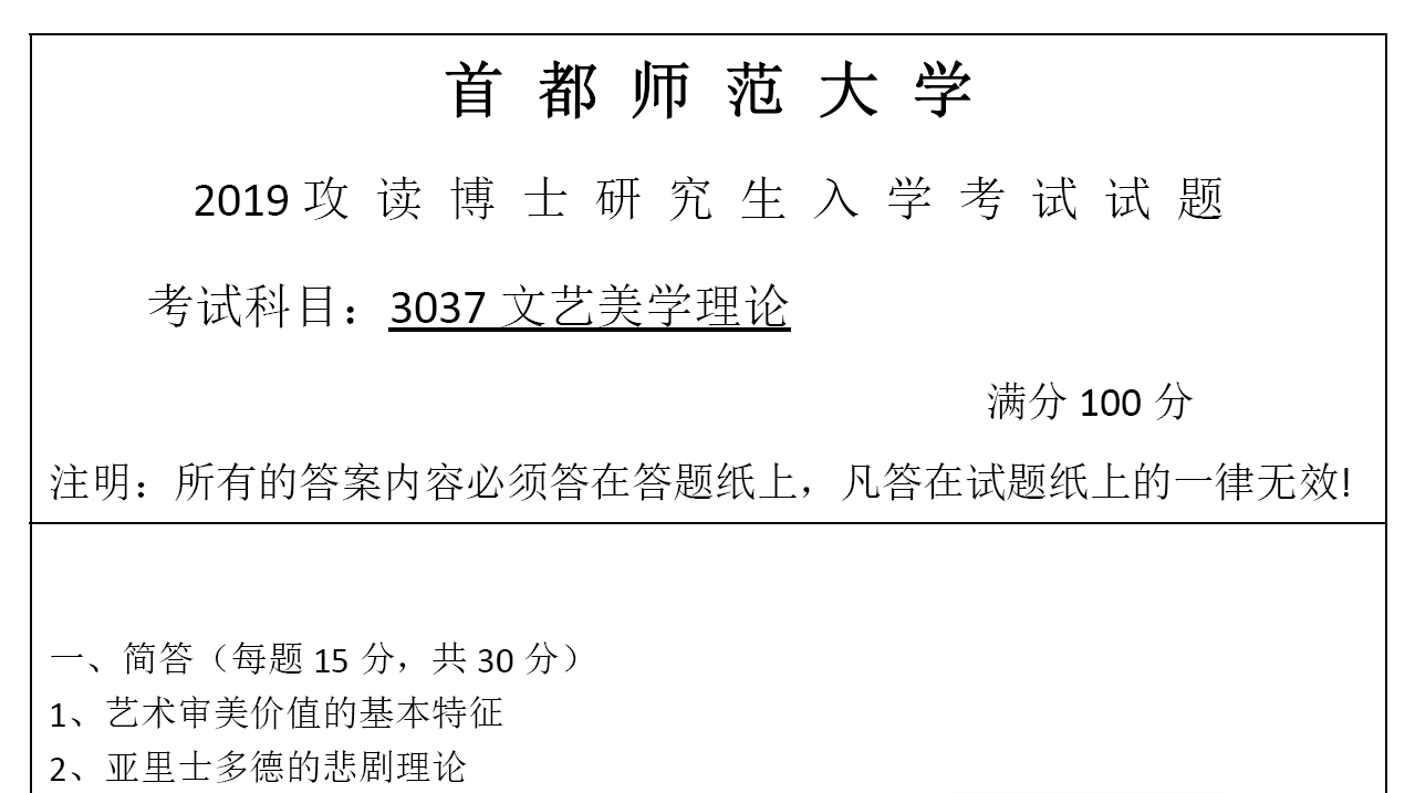文艺美学理论是首都师范大学艺术学、中国语言文学类博士研究生招生考试的核心专业科目,其真题对把握文艺美学理论命题方向、提升美学理论分析与应用能力具有关键指导意义。考生可通过以下权威渠道获取该校全学科考博真题(含 3037 文艺美学理论、各专业课等)及配套高分答案详解,为备考提供精准资源支撑:
