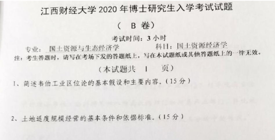 江西财经大学国土资源经济学考博真题覆盖多年份,所有年份真题均配备完整、精准的高分答案详解,解析由国土资源经济学专业教研团队编写,涵盖考点定位、资源经济现象分析、理论逻辑推导及学术观点梳理,能帮助考生高效掌握命题规律与应试策略。以下为江西财经大学国土资源经济学考博真题(精选题目)及答案详解,助力考生针对性备考。