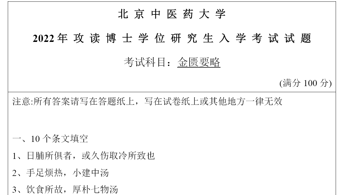 《金匮要略》是北京中医药大学中医学类博士研究生招生考试的核心专业科目,其真题聚焦经典条文、辨证思路与方剂应用,对考生的中医经典临床素养具有关键考查意义。考生可通过以下权威渠道获取该校全学科考博真题(含《金匮要略》、各专业课等)及配套高分答案详解,为备考提供精准资源支撑: