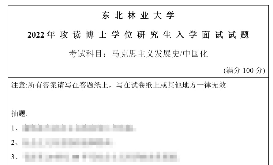 东北林业大学考博真题,马克思主义发展史、中国化方向面试考博试题