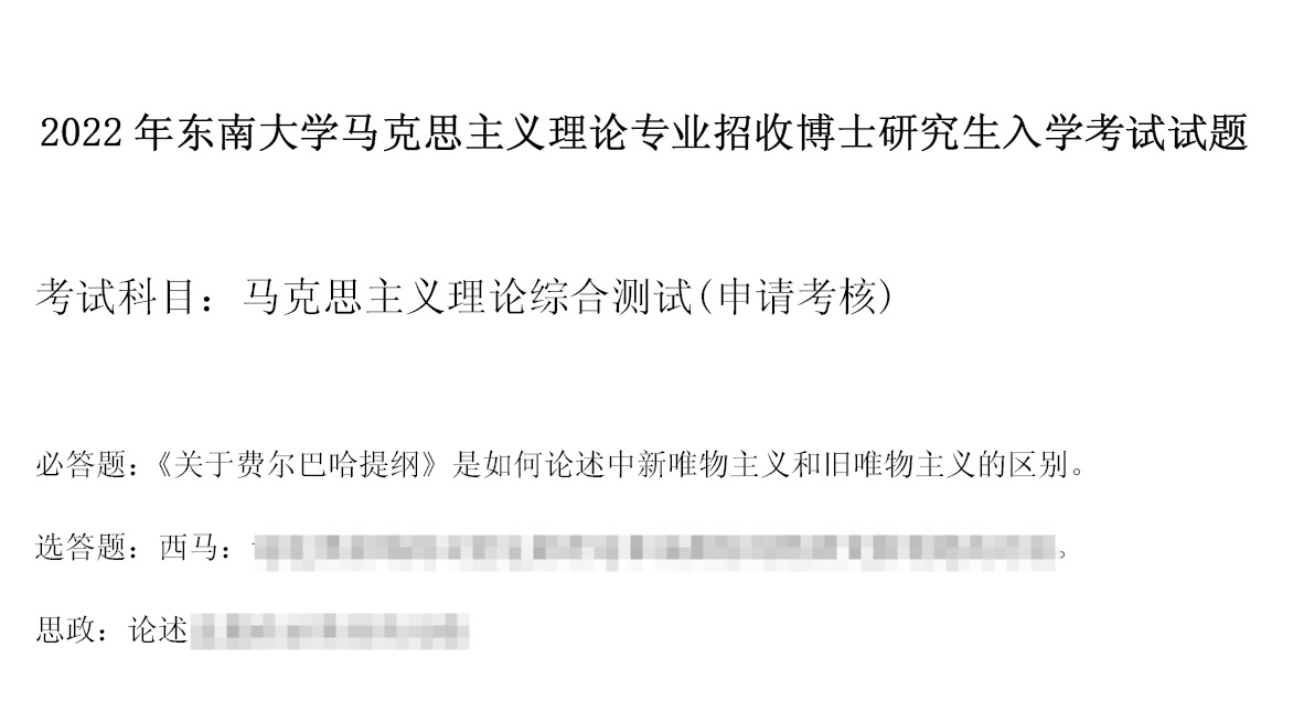 考博备考需依托权威真题资源,东南大学马克思主义理论综合测试考博真题及全学科考博资料(含各专业课)均配备高分答案详解,可通过以下渠道获取: