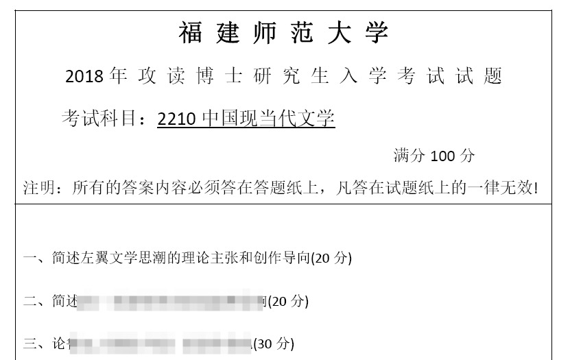 福建师范大学中国现当代文学考博真题覆盖多年份,所有年份真题均配备完整、精准的高分答案详解,解析由文学专业教研团队编写,涵盖思潮内涵、创作特征等内容,能帮助考生高效掌握命题规律与应试策略。以下为福建师范大学中国现当代文学考博真题(精选题目)及答案详解,助力考生针对性备考。