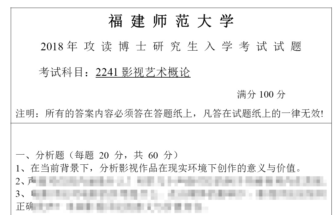 福建师范大学影视艺术概论考博真题覆盖多年份,所有年份真题均配备完整、精准的高分答案详解,解析由影视专业教研团队编写,涵盖理论内涵、创作价值等内容,能帮助考生高效掌握命题规律与应试策略。以下为福建师范大学影视艺术概论考博真题(精选题目)及答案详解,助力考生针对性备考。