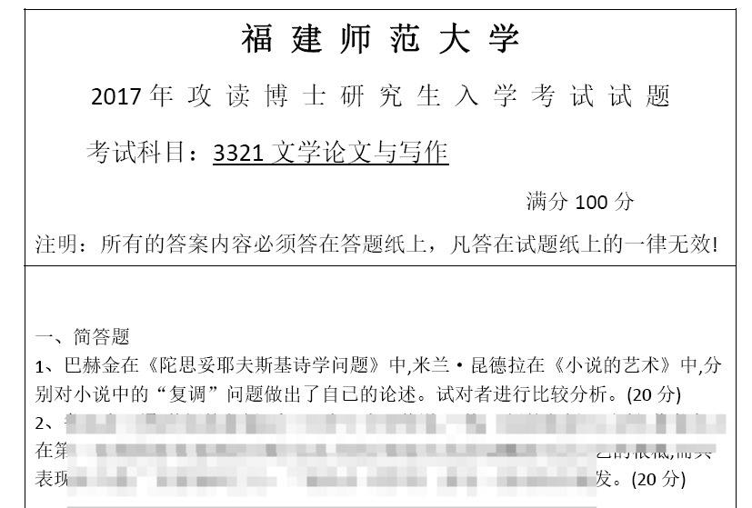 文学论文与写作是福建师范大学文学类专业博士研究生招生考试的核心科目,其真题聚焦文学理论经典议题与学术分析能力,对考生的文学理论素养与论文写作逻辑具有关键考查意义。考生可通过以下权威渠道获取该校全学科考博真题(含文学论文与写作、各专业课等)及配套高分答案详解,为备考提供精准资源支撑: