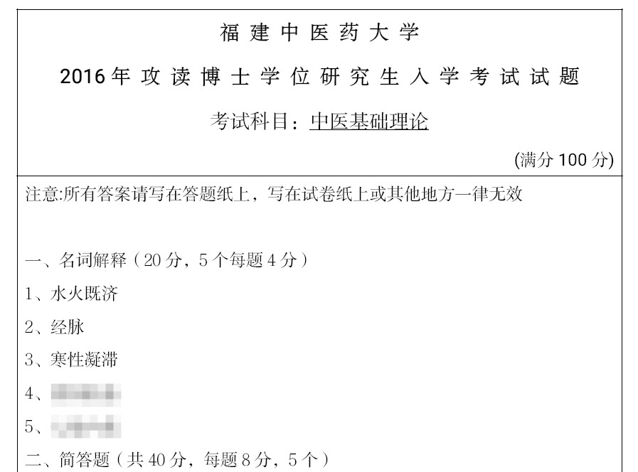 中医基础理论是福建中医药大学中医学类专业博士研究生招生考试的核心科目,其真题聚焦中医经典理论概念与核心内涵,对考生的中医理论素养具有关键考查意义。考生可通过以下权威渠道获取该校全学科考博真题(含中医基础理论、各专业课等)及配套高分答案详解,为备考提供精准资源支撑: