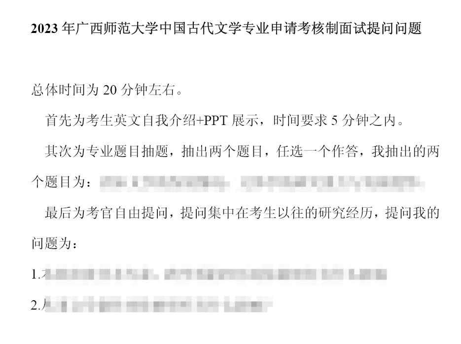 广西师范大学中国古代文学专业申请考核制面试考博真题