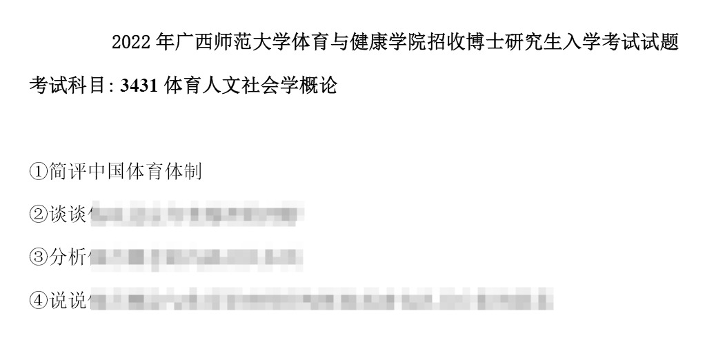 2022 年广西师范大学体育与健康学院招收博士研究生入学考试试题