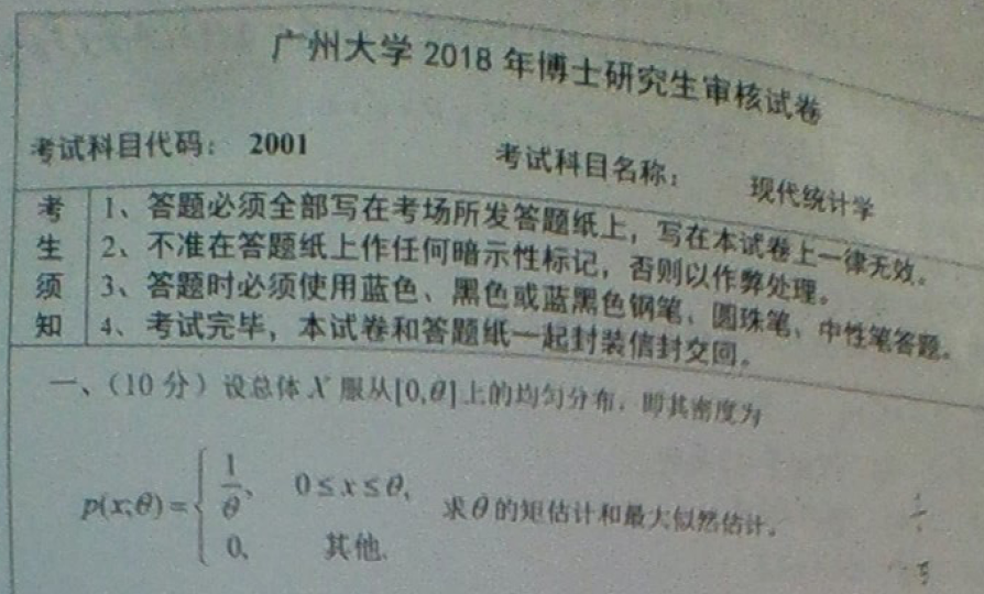 广州大学考博真题,现代统计学考博试题