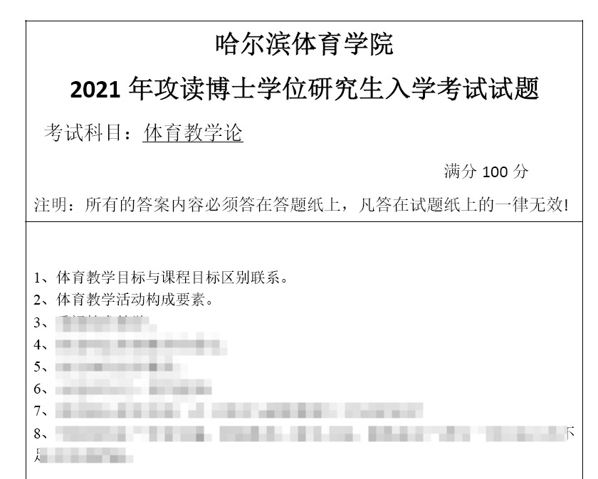 哈尔滨体育学院 2021 年攻读博士学位研究生入学考试试题