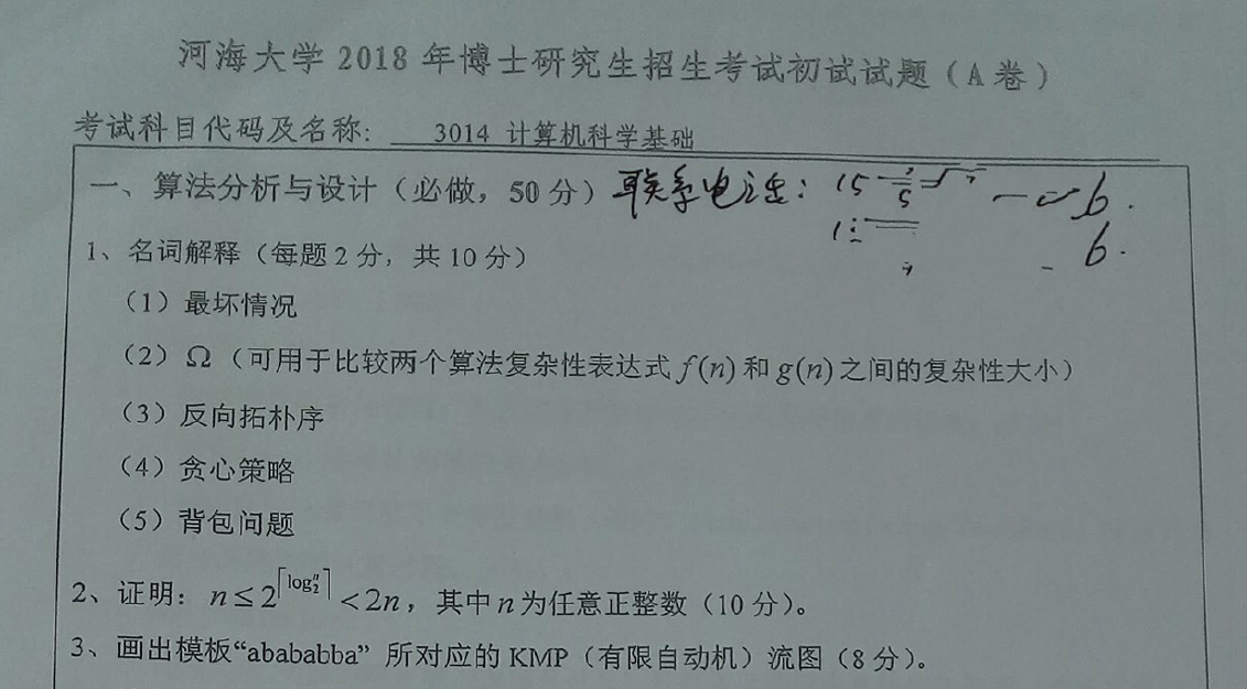 河海大学计算机科学基础考博真题覆盖多年份,所有真题均配备精准解析,能帮助考生高效掌握命题规律。以下为 2018 年该科目考博真题(精选)及答案详解: