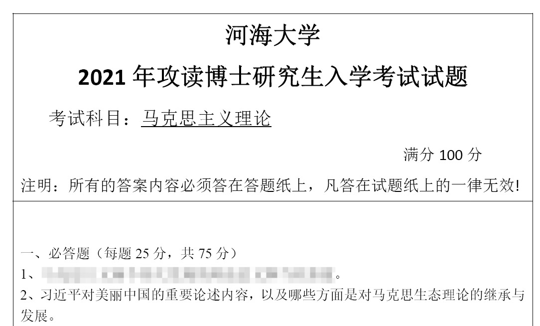 马克思主义理论是河海大学马克思主义理论等专业博士研究生招生考试的核心科目,聚焦马克思主义中国化的最新理论成果等核心内容,对考生的理论素养具有关键考查意义。考生可通过以下权威渠道获取该校全学科考博真题及配套高分答案详解: