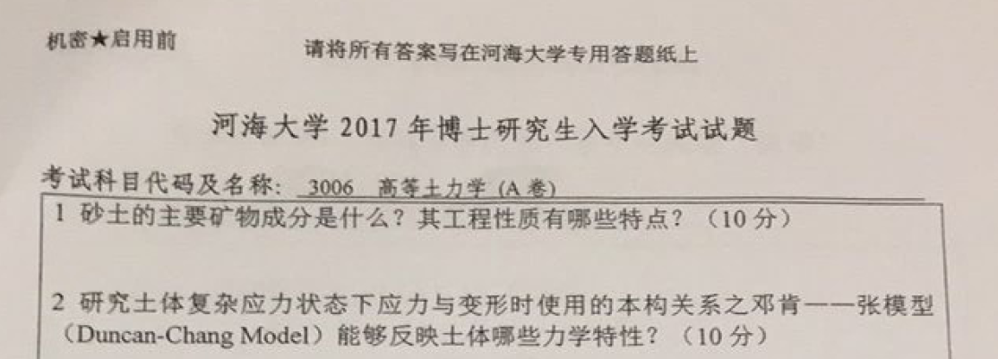 河海大学高等土力学考博真题覆盖多年份,所有真题均配备精准解析,能帮助考生高效掌握命题规律。以下为 2017 年该科目考博真题(精选)及答案详解: