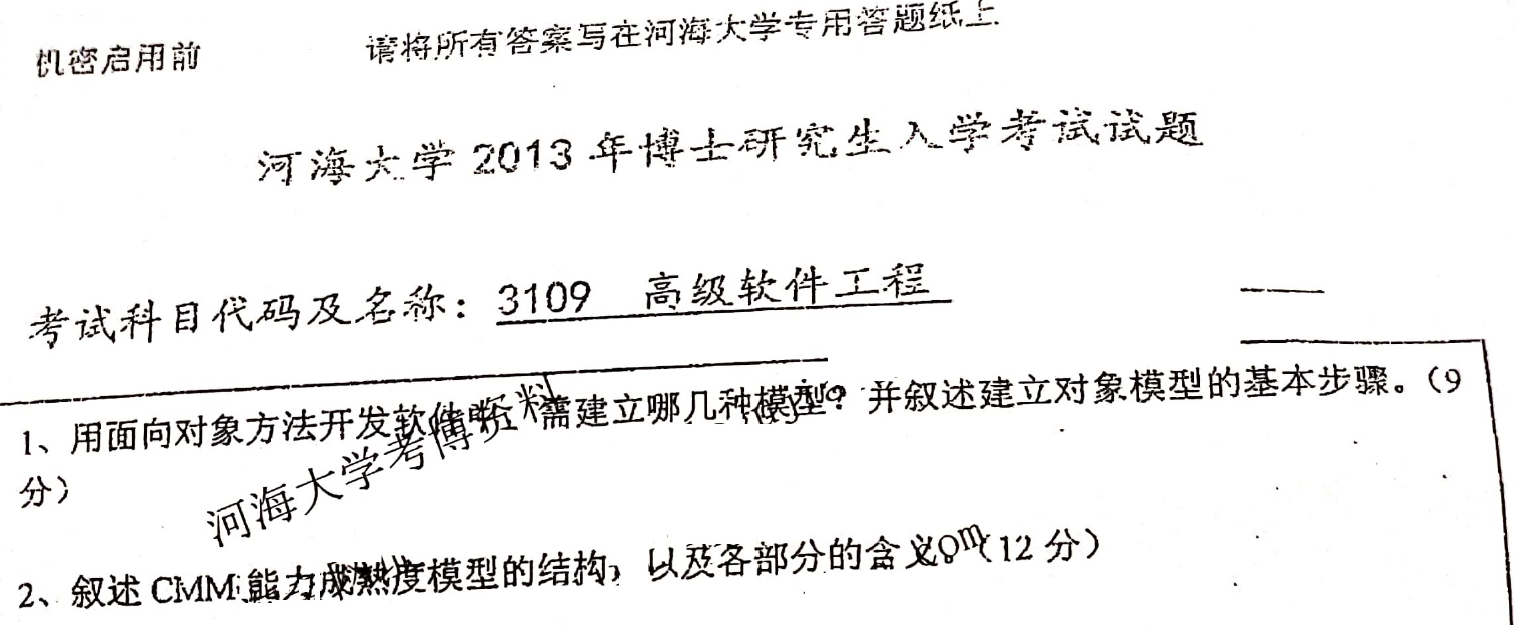 河海大学高级软件工程考博真题覆盖多年份,所有真题均配备精准解析,能帮助考生高效掌握命题规律。以下为 2013 年该科目考博真题(精选)及答案详解:
