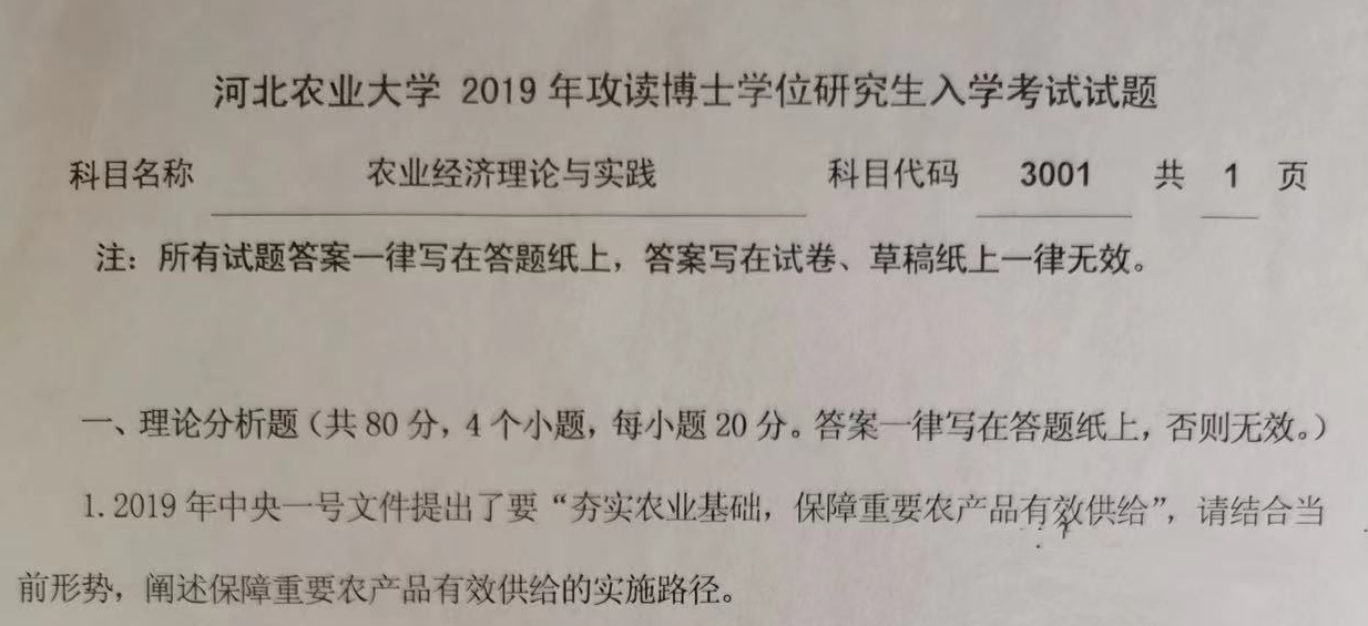 河北农业大学农业经济理论与实践考博真题覆盖多年份,所有真题均配备精准解析,能帮助考生高效掌握命题规律。以下为 2019 年该科目考博真题(精选)及答案详解: