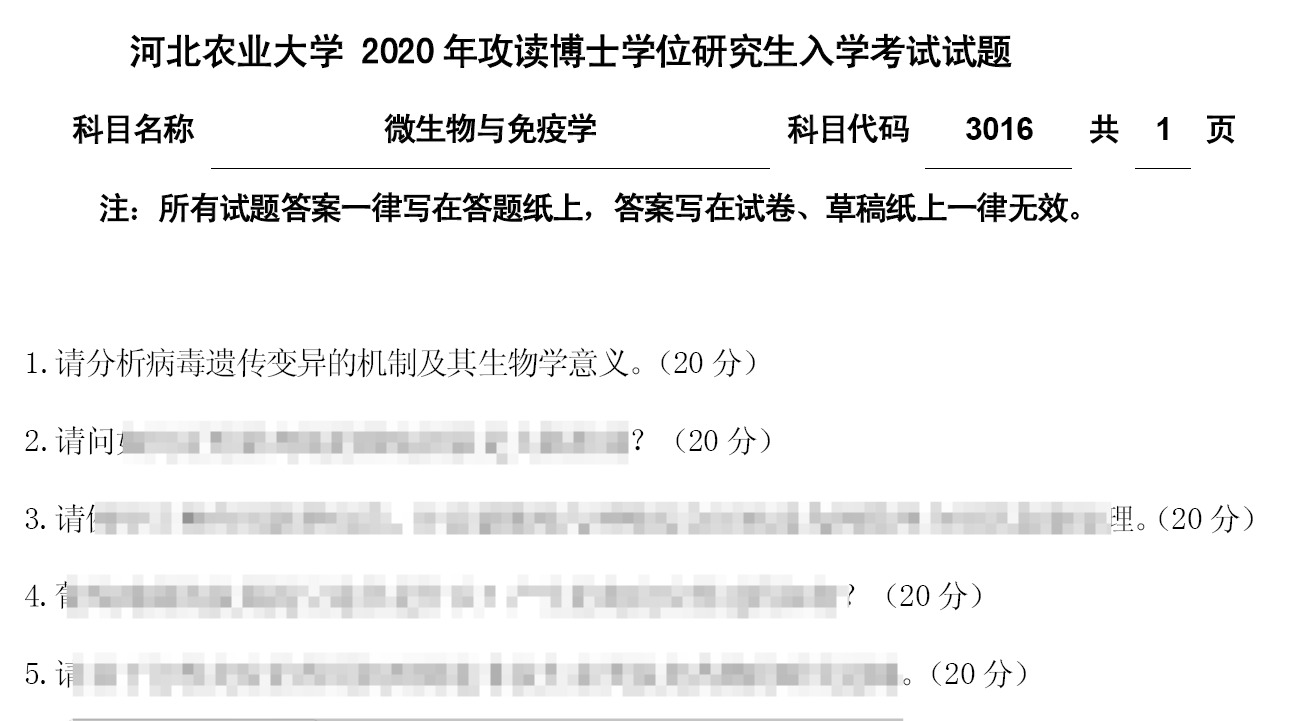 微生物与免疫学是河北农业大学相关生物类专业博士研究生招生考试的核心科目,聚焦病毒遗传变异等微生物学核心内容,对考生的微生物与免疫学专业素养具有关键考查意义。考生可通过以下权威渠道获取该校全学科考博真题及配套高分答案详解: