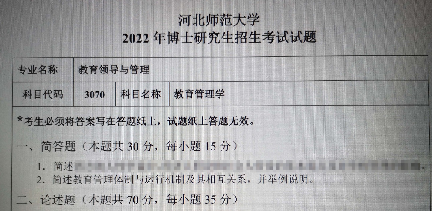 河北师范大学 3070 教育管理学考博真题覆盖多年份,所有真题均配备精准解析,能帮助考生高效掌握命题规律。以下为 2022 年该科目考博真题(精选)及答案详解: