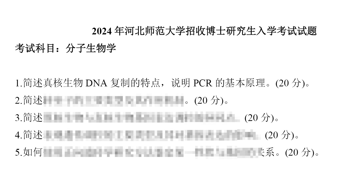 分子生物学是河北师范大学生物类相关专业博士研究生招生考试的核心科目,聚焦 DNA 复制、PCR 技术等分子生物学核心内容,对考生的分子生物学专业素养具有关键考查意义。考生可通过以下权威渠道获取该校全学科考博真题及配套高分答案详解:
