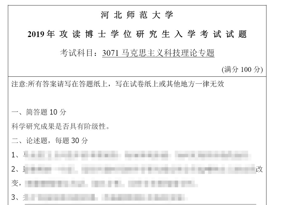 马克思主义科技理论专题(科目代码 3071)是河北师范大学相关马克思主义理论专业博士研究生招生考试的核心科目,聚焦科技与社会、阶级的关系等理论议题,对考生的马克思主义科技理论素养具有关键考查意义。考生可通过以下权威渠道获取该校全学科考博真题及配套高分答案详解: