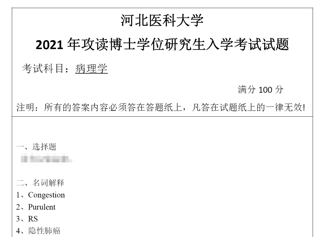 河北医科大学 2021 年攻读博士学位研究生入学考试试题