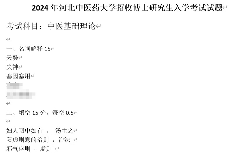 2024 年河北中医药大学招收博士研究生入学考试试题