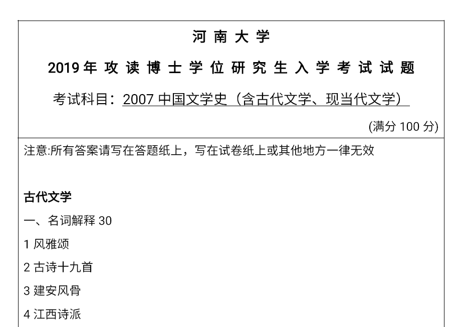 河南大学中国文学史考博真题覆盖多年份,所有真题均配备精准解析,能帮助考生高效掌握命题规律。以下为 2019 年该科目考博真题(精选)及答案详解: