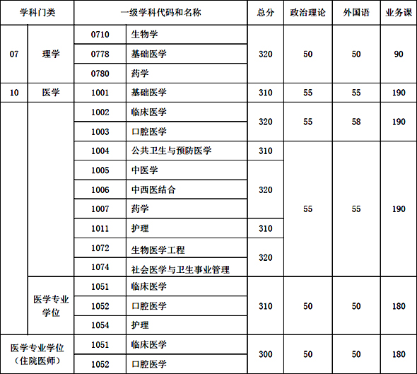 1.政治理论、外国语满分为100分,业务课满分为150分(其中管理类联考综合满分为200分,教育学、历史学、医学门类的业务课满分为300分);