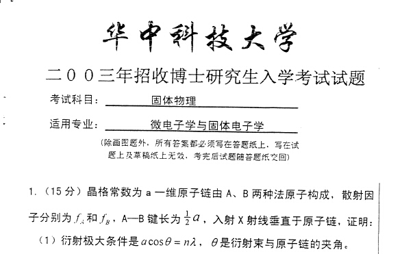 说明:本站提供的华中科技大学考博真题来源于华中科技大学研究生院,提供历年考博真题、考博试题答案详解下载